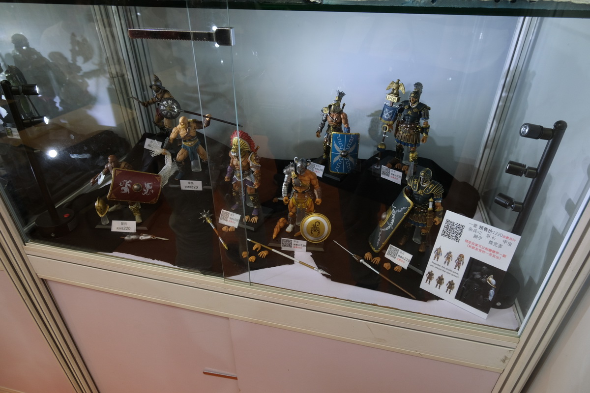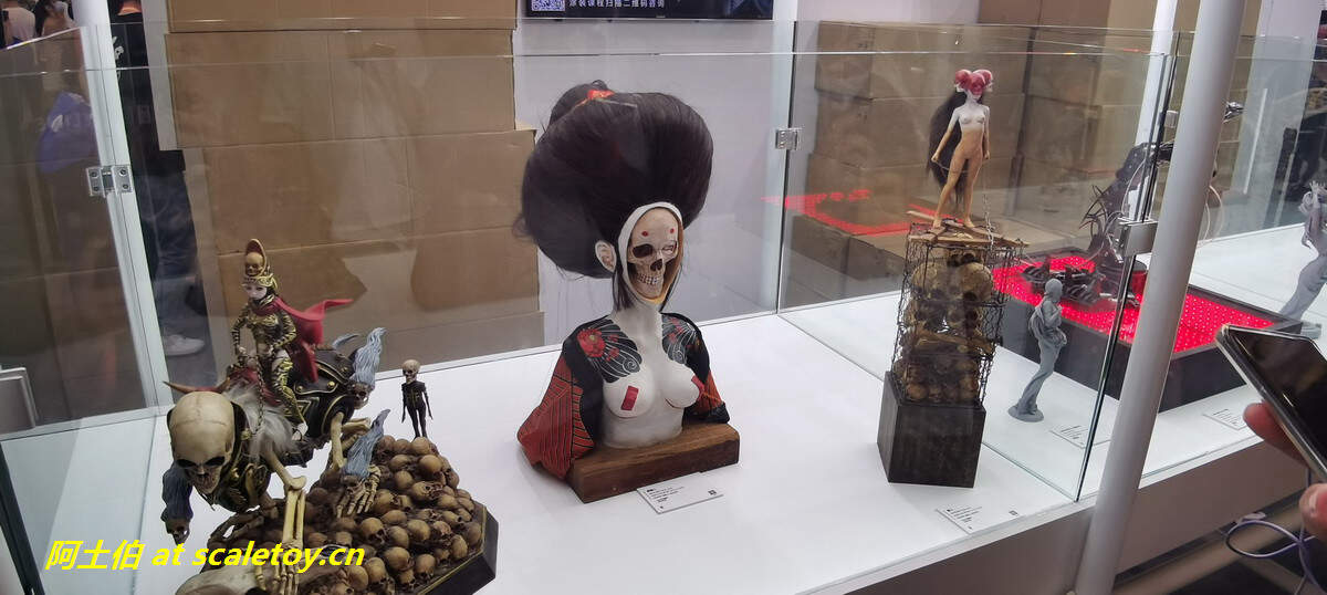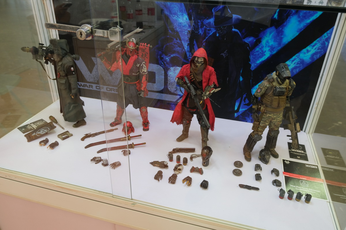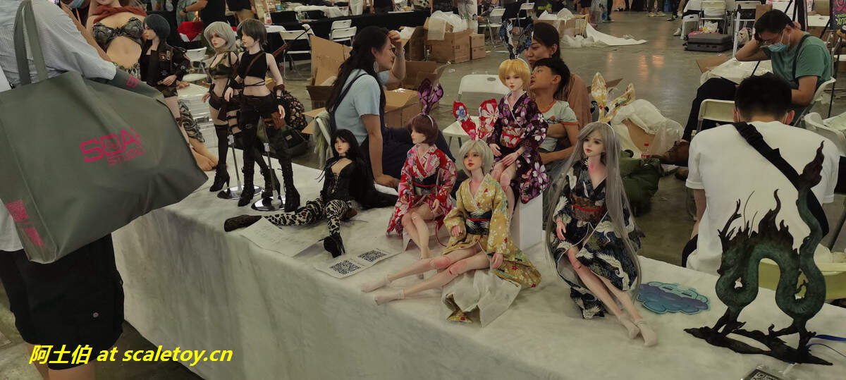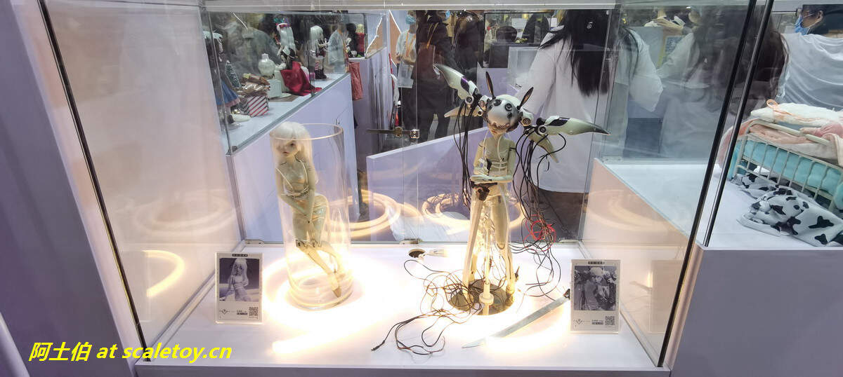 TBL和PHICEN的展位,算是第一次看到、摸到PHICEN的素体实物陈列吧,的确是好东西,包胶避免了难看的关节,金属骨架也避免了塑料的脆弱,活动性也非常好,种类太多啦!眼花缭乱。当然也有一些成品兵人展示。