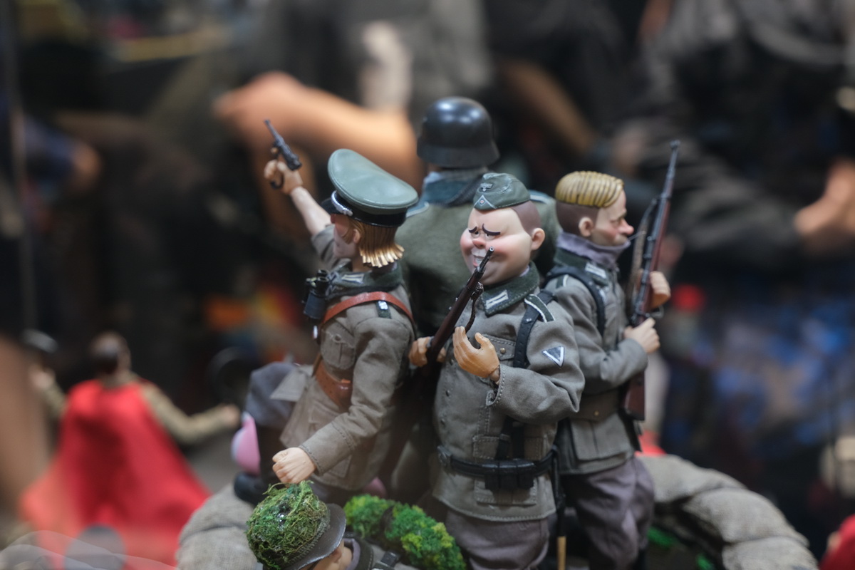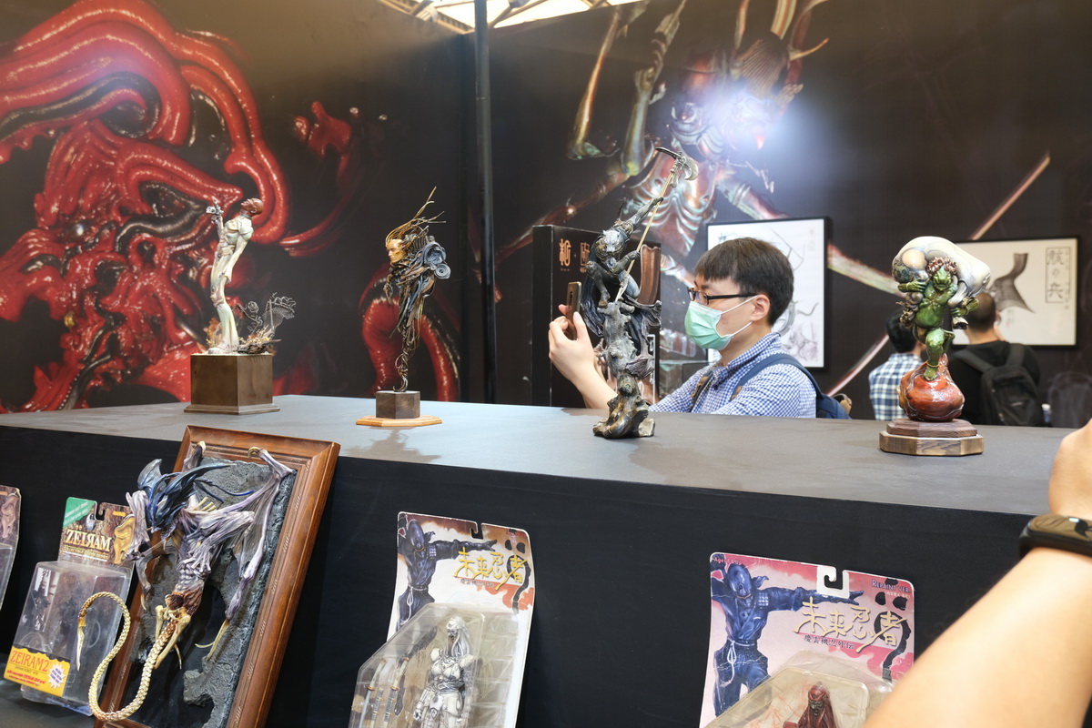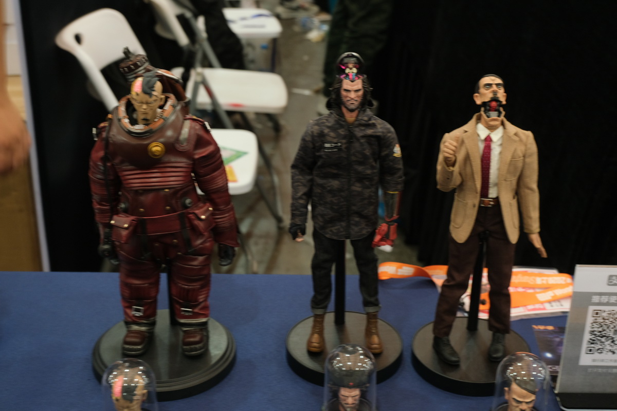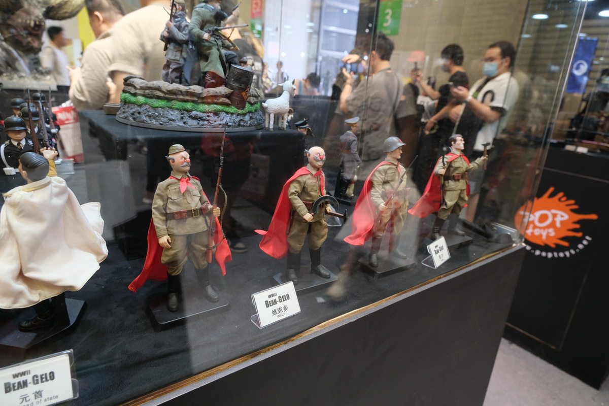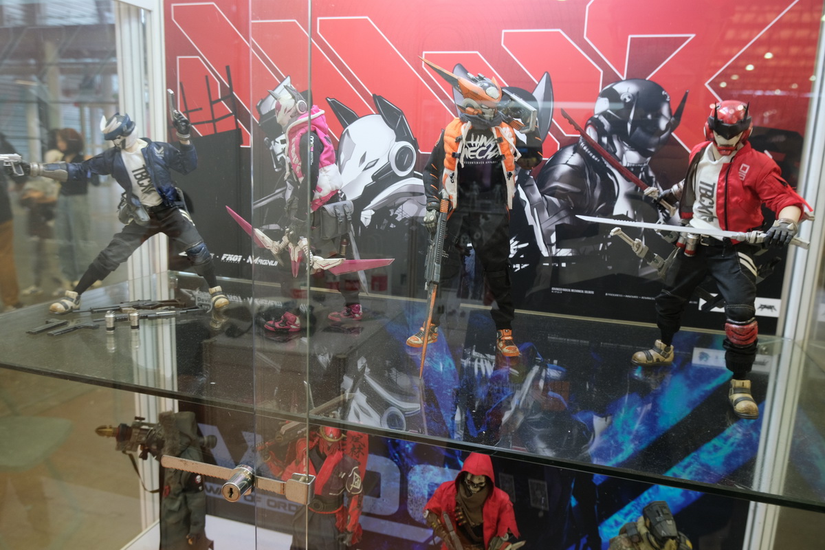 TBL和PHICEN的展位,算是第一次看到、摸到PHICEN的素体实物陈列吧,的确是好东西,包胶避免了难看的关节,金属骨架也避免了塑料的脆弱,活动性也非常好,种类太多啦!眼花缭乱。当然也有一些成品兵人展示。