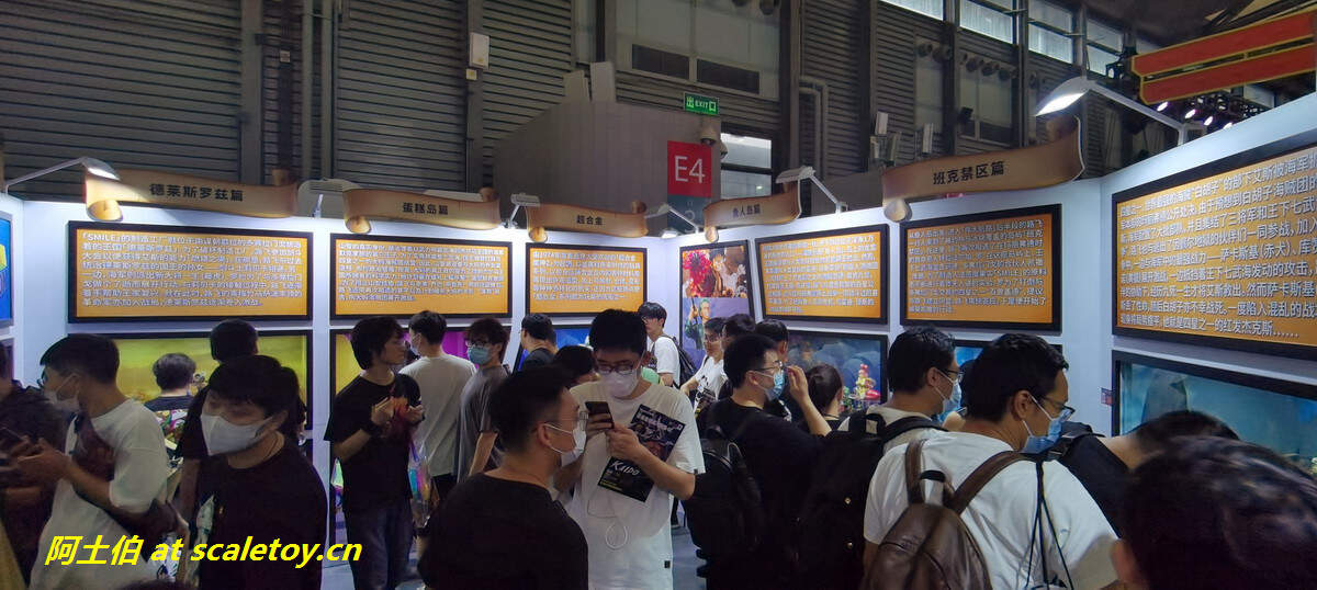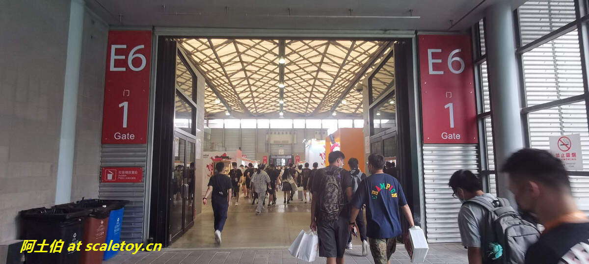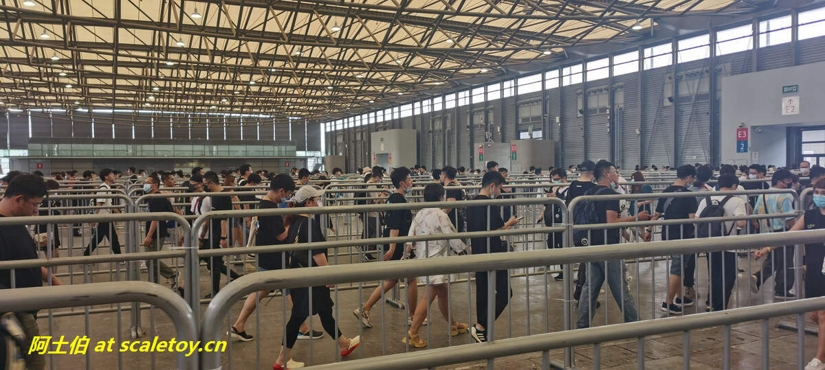 而后我惊奇的发现E5展厅没有任何模型雕像摊头,只有行为艺术:E5被铁马分割成来回蛇形通道,如贪吃蛇一样,在E5刷身份证刷脸之后,需要您的耐心,尤其是体力,来走完这来来回回的过道。基本上如果没有买vip票,那么就要拼体力去抢排队抢限定了,可以考虑先去戈壁拉练、再来这里扫货。。。