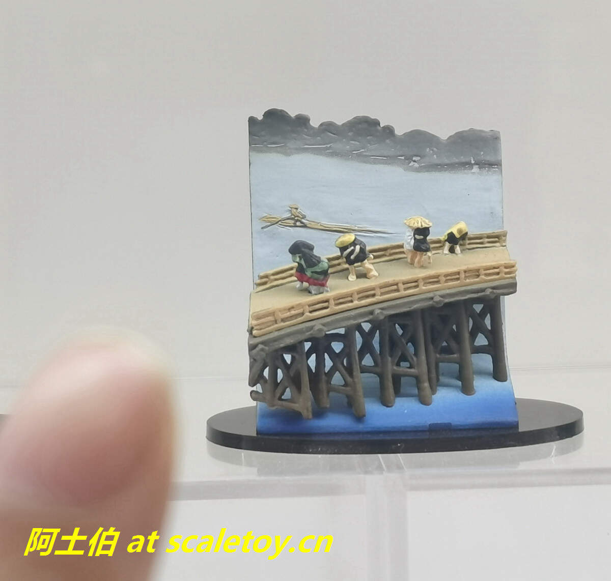 这是体现精细的上色技艺的展示,极小的桥梁上的人物都可以塑型,上色喷绘的栩栩如生